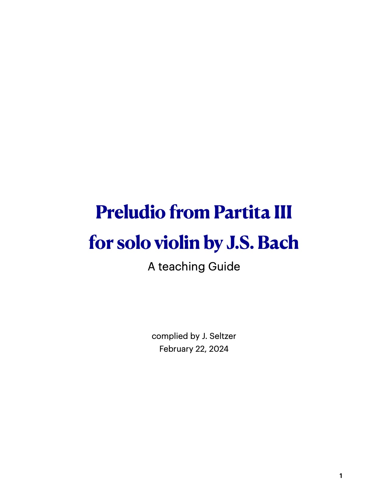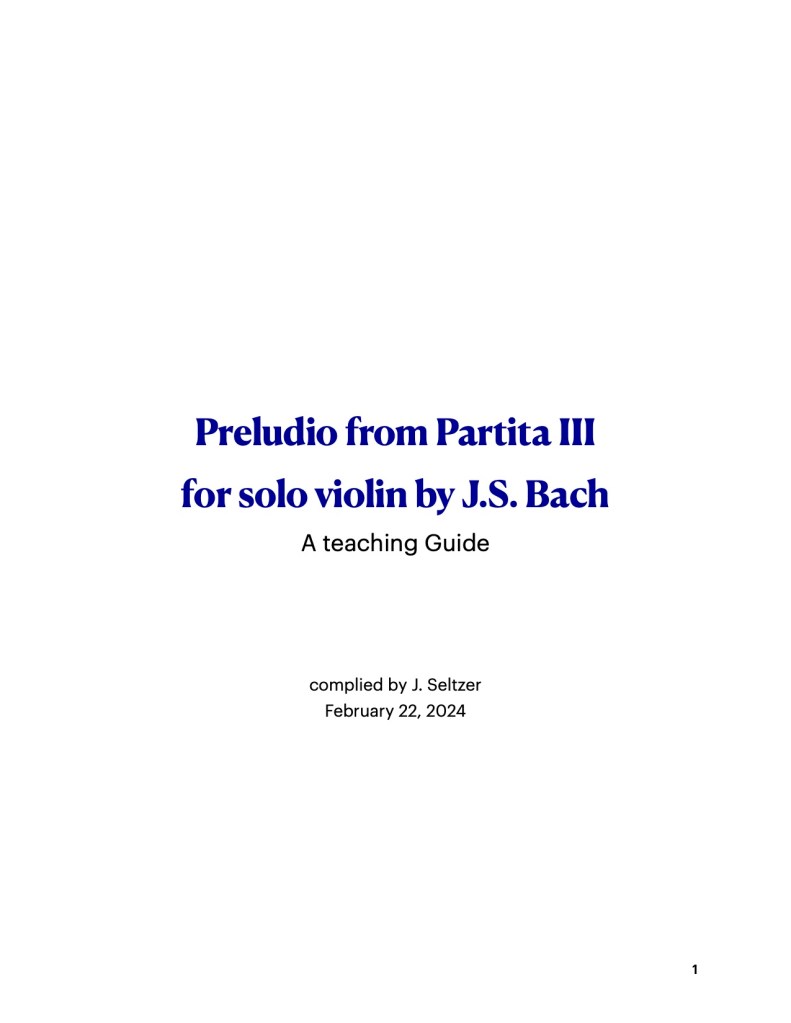 - Bach- Partita III – Preludio. $7.99 (this is a pdf of the exercises and teaching plan, it does not include a transcript of the full piece)